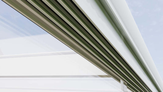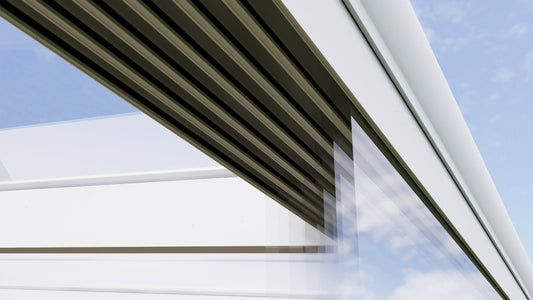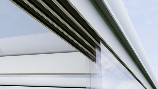 6 - Rails getinte glazen schuifwand Wit tot 600 cm breed (6 x 103 cm glaspanelen)