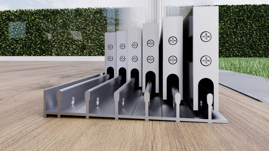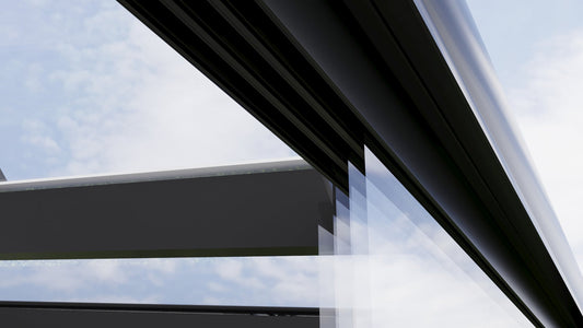 6 - Rails getinte glazen schuifwand Zwart tot 600 cm breed (6 x 103 cm glaspanelen)
